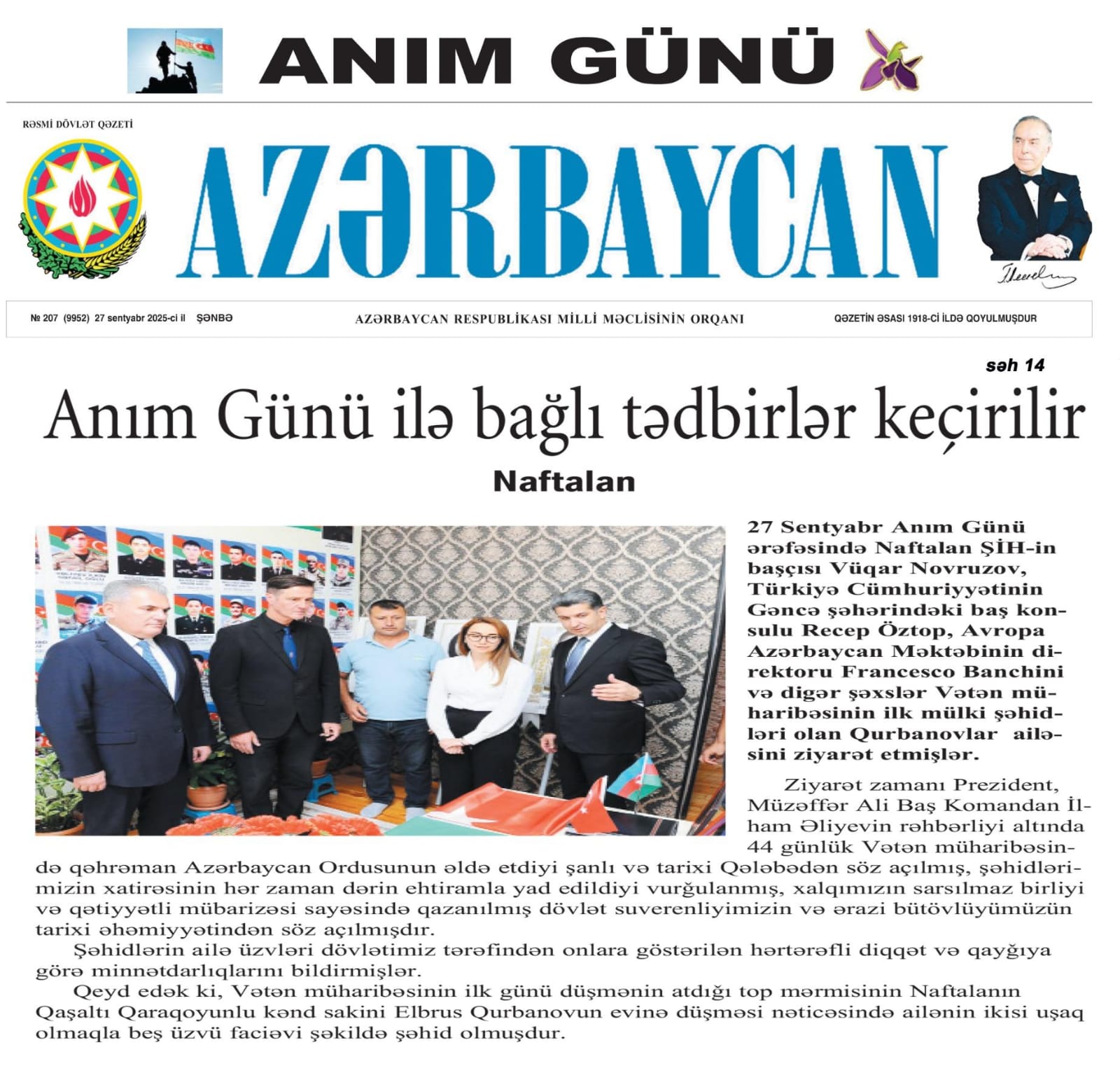 Anım Günü ilə bağlı rəsmi dövlət nəşrlərində Naftalanda keçirilən tədbirlər işıqlandırılıb