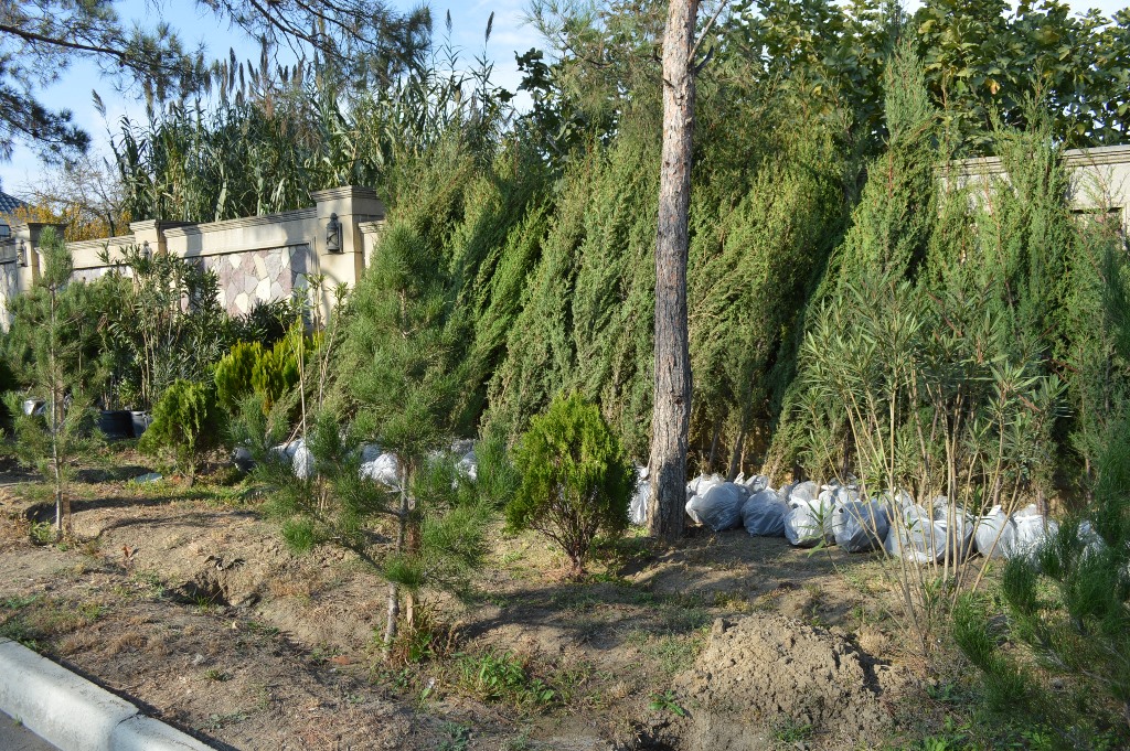 Naftalanda ağac və gül kolları əkilib