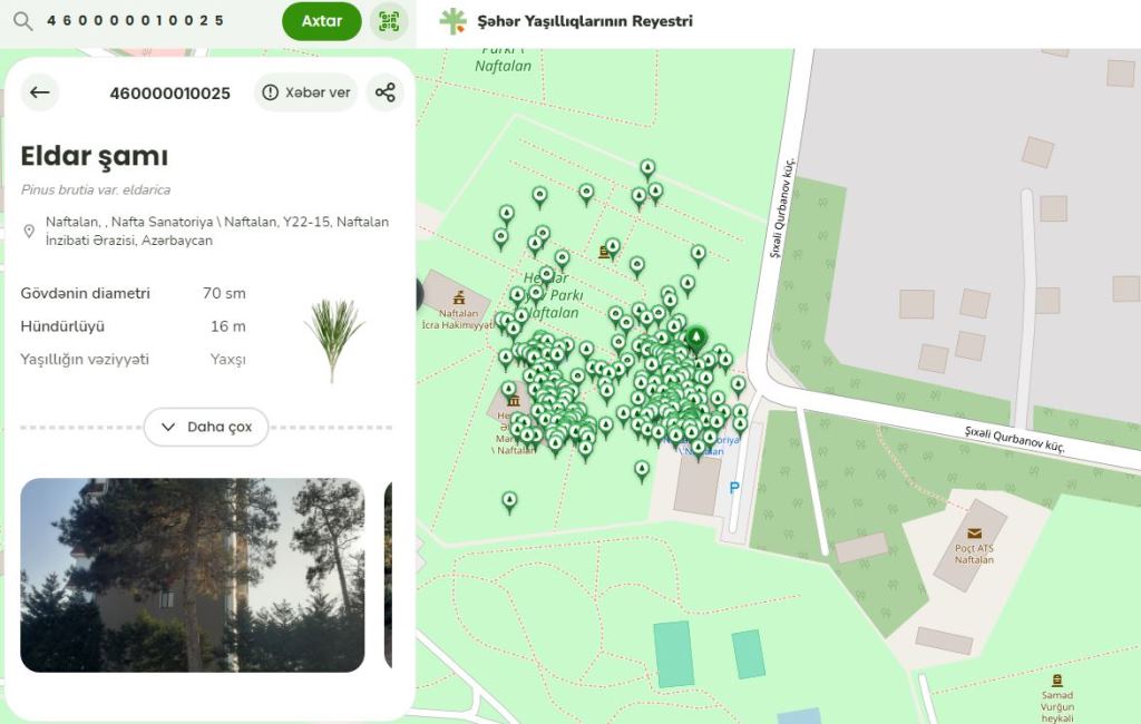 Layihə çərçivəsində Naftalan şəhərində hazırda 400-dən çox ağac inventarlaşdırılmışdır.