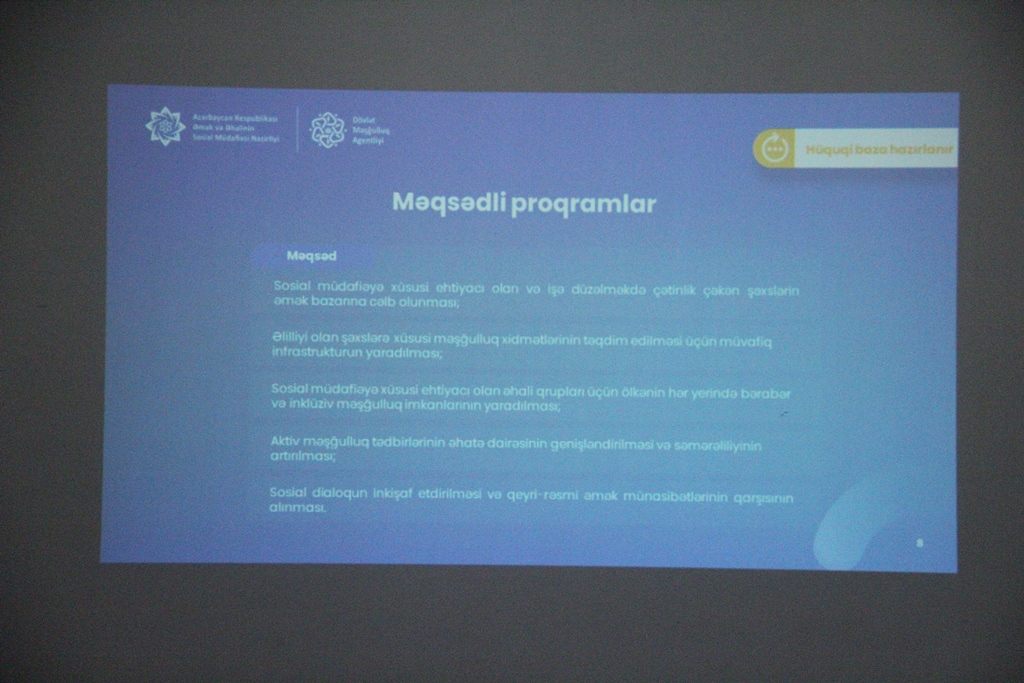 Tədbirdə Naftalan Şəhər İcra Hakimiyyətinin, Dövlət Məşğulluq Agentliyinin Gəncə-Daşkəsən Regional Məşğulluq filialının əməkdaşları və Naftalan xidmət şöbəsinin müdiri, şəhərdə fəaliyyət göstərən otel və müalicə mərkəzlərinin məsul əməkdaşları, aidiyyəti üzrə idarə, müəssisə və təşkilat rəhbərləri iştirak ediblər.