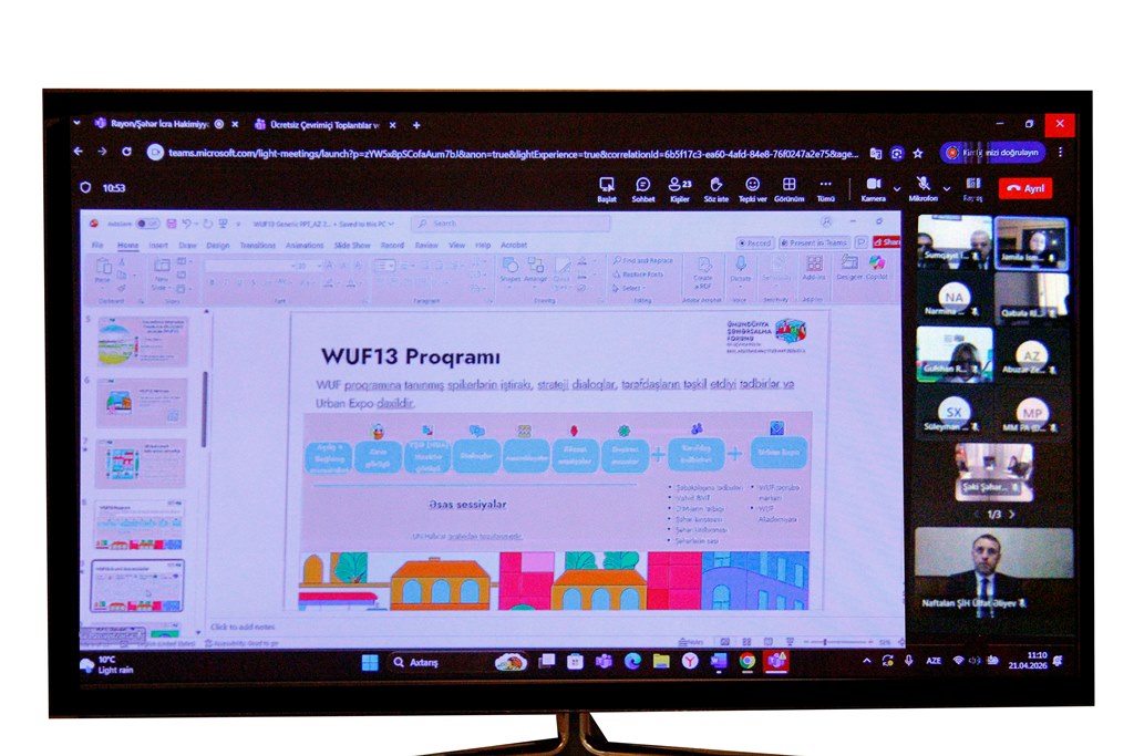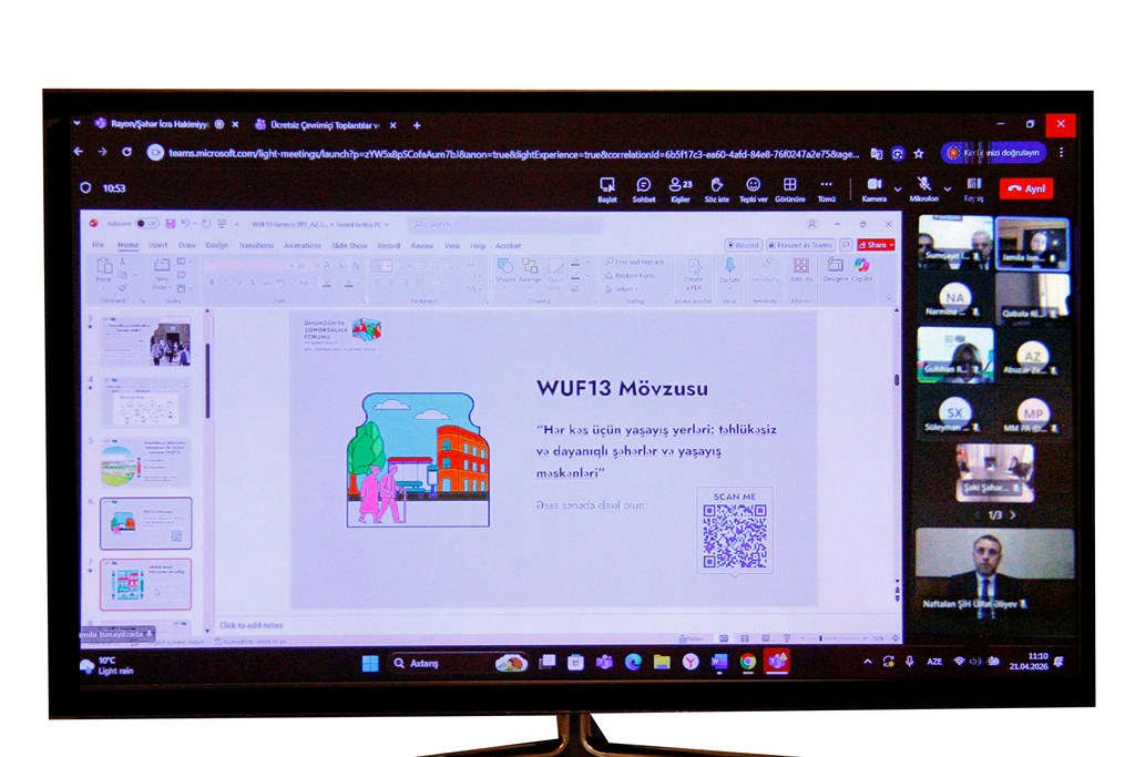 BMT-nin Ümumdünya Şəhərsalma Forumunun 13-cü sessiyası (WUF13) şəhərsalma tədbirinin hazırlıq işlərinin qarşılıqlı müzakirəsi və təkliflərin dinlənilməsi məqsədilə 21.04.2026-cı il tarixində onlayn görüş keçirilib. Görüşdə Naftalan ŞİH-nin məsul əməkdaşları da iştirak edib.